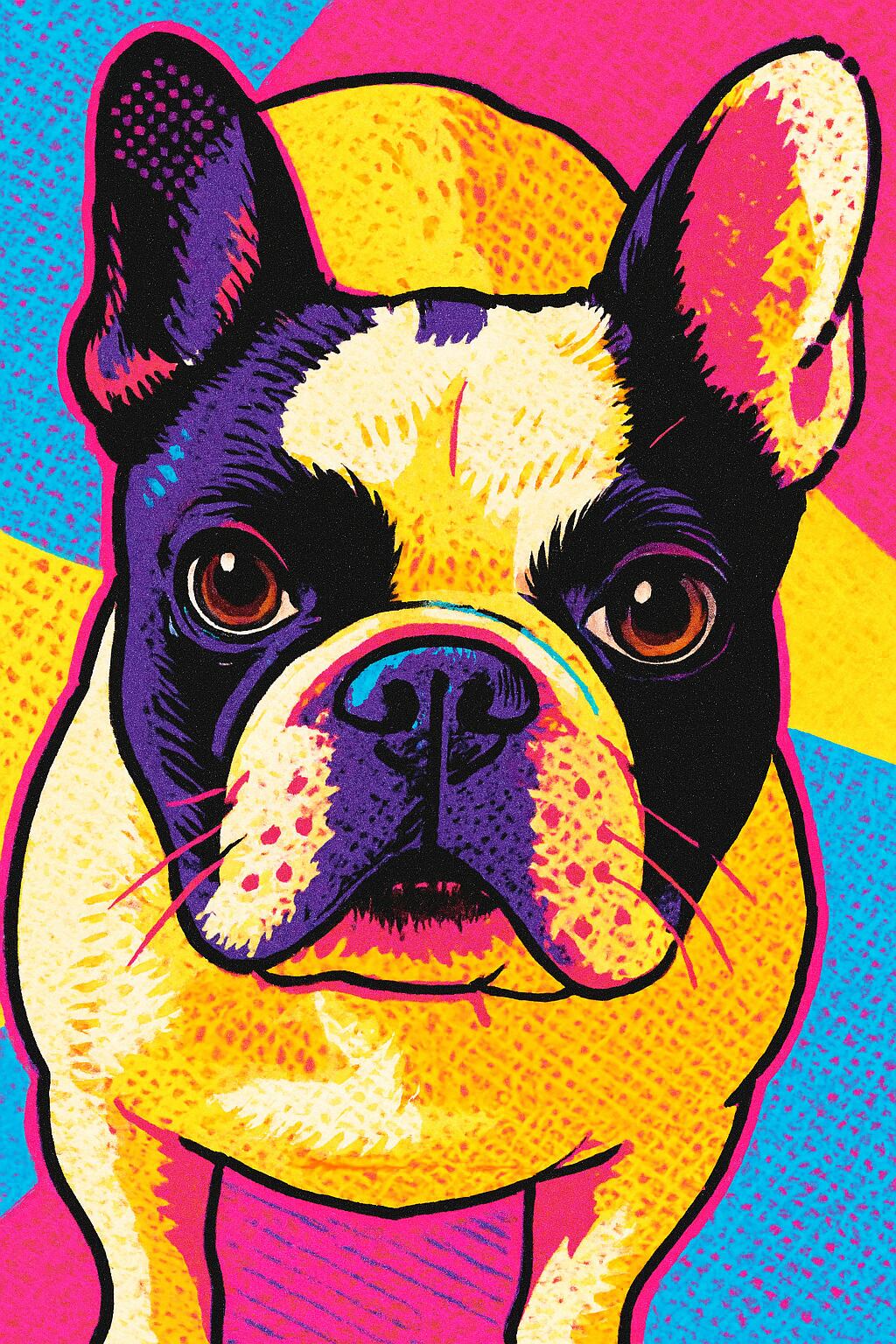 フレンチブルドッグをポップアート風に仕上げたAIアート作品です。