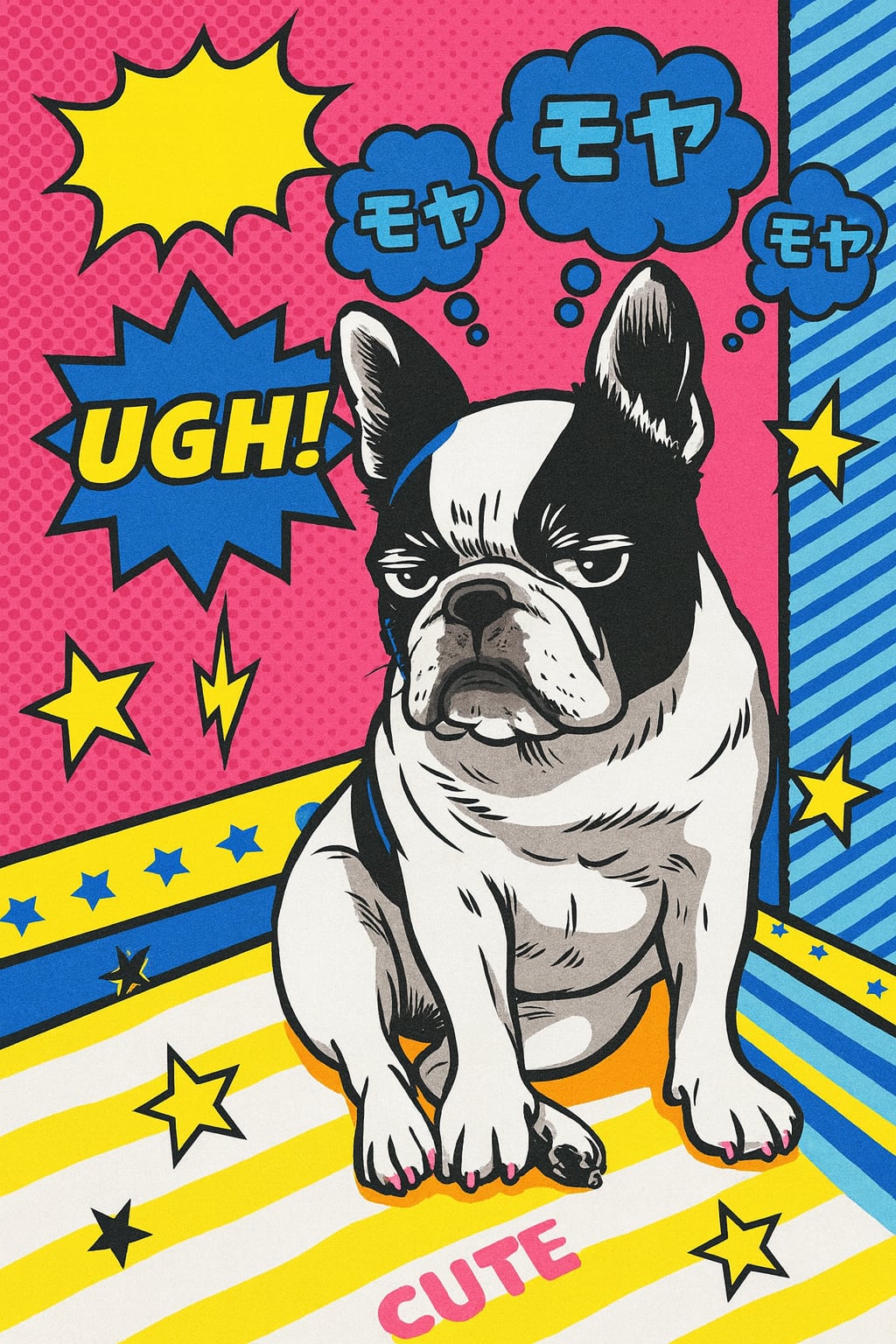 フレンチブルドッグの“モヤ顔”をポップでカラフルに仕上げたAIアート作品。