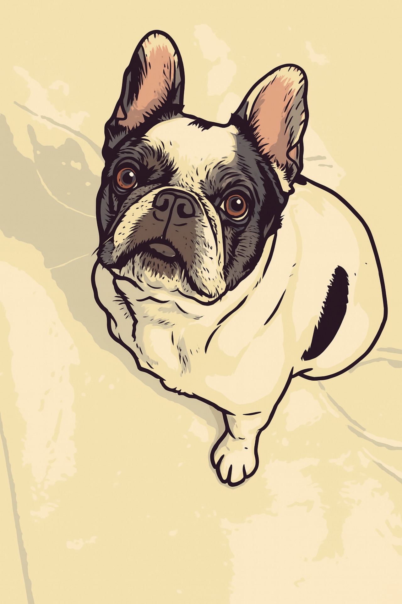 フレンチブルドッグをポップアート風に仕上げたAIアート作品です。 見上げる構図が印象的で、空間のアクセントとして飾りやすいデザイン。 ポスター、プリント、デジタルアートとして幅広くご利用いただけます。 ギフトにもおすすめです。